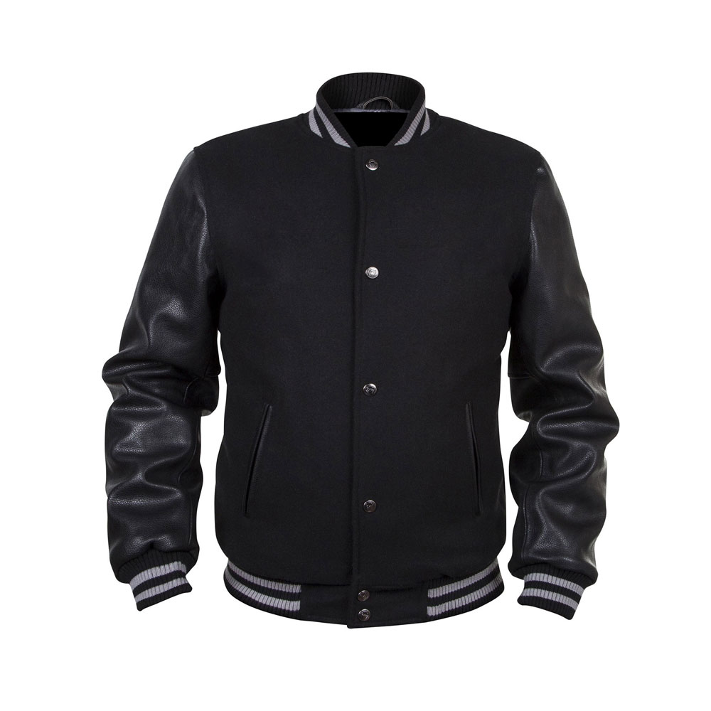 The Varsity Jacket blends classic athletic heritage with modern craftsmanship, featuring a premium wool-blend body paired with durable leather sleeves for a bold, iconic look. Its quilted inner lining offers lightweight warmth, while the rib-knit collar, cuffs, and hem provide a secure and comfortable fit. High-quality snap buttons, reinforced stitching, and refined details elevate durability and style. Designed to stand out, this varsity jacket moves effortlessly from everyday wear to a signature statement piece.