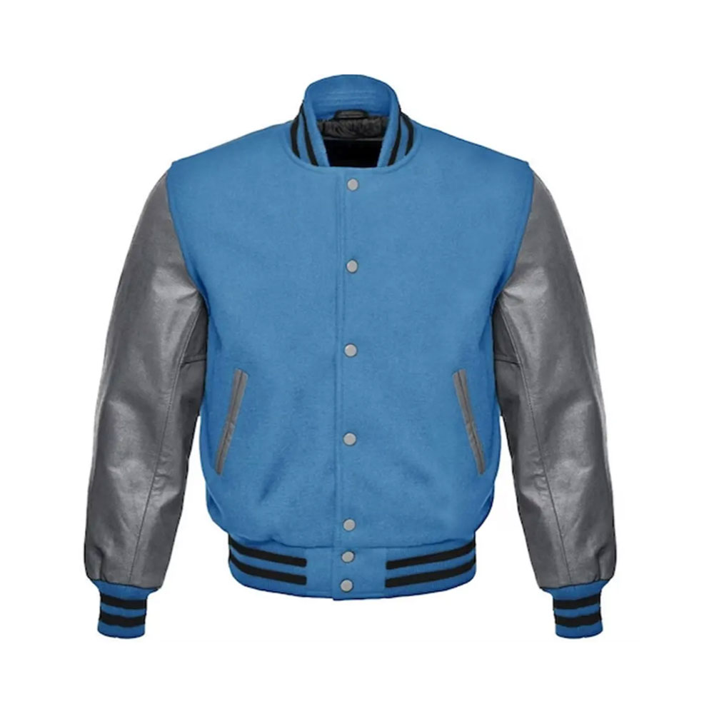 The Varsity Jacket blends classic athletic heritage with modern craftsmanship, featuring a premium wool-blend body paired with durable leather sleeves for a bold, iconic look. Its quilted inner lining offers lightweight warmth, while the rib-knit collar, cuffs, and hem provide a secure and comfortable fit. High-quality snap buttons, reinforced stitching, and refined details elevate durability and style. Designed to stand out, this varsity jacket moves effortlessly from everyday wear to a signature statement piece.